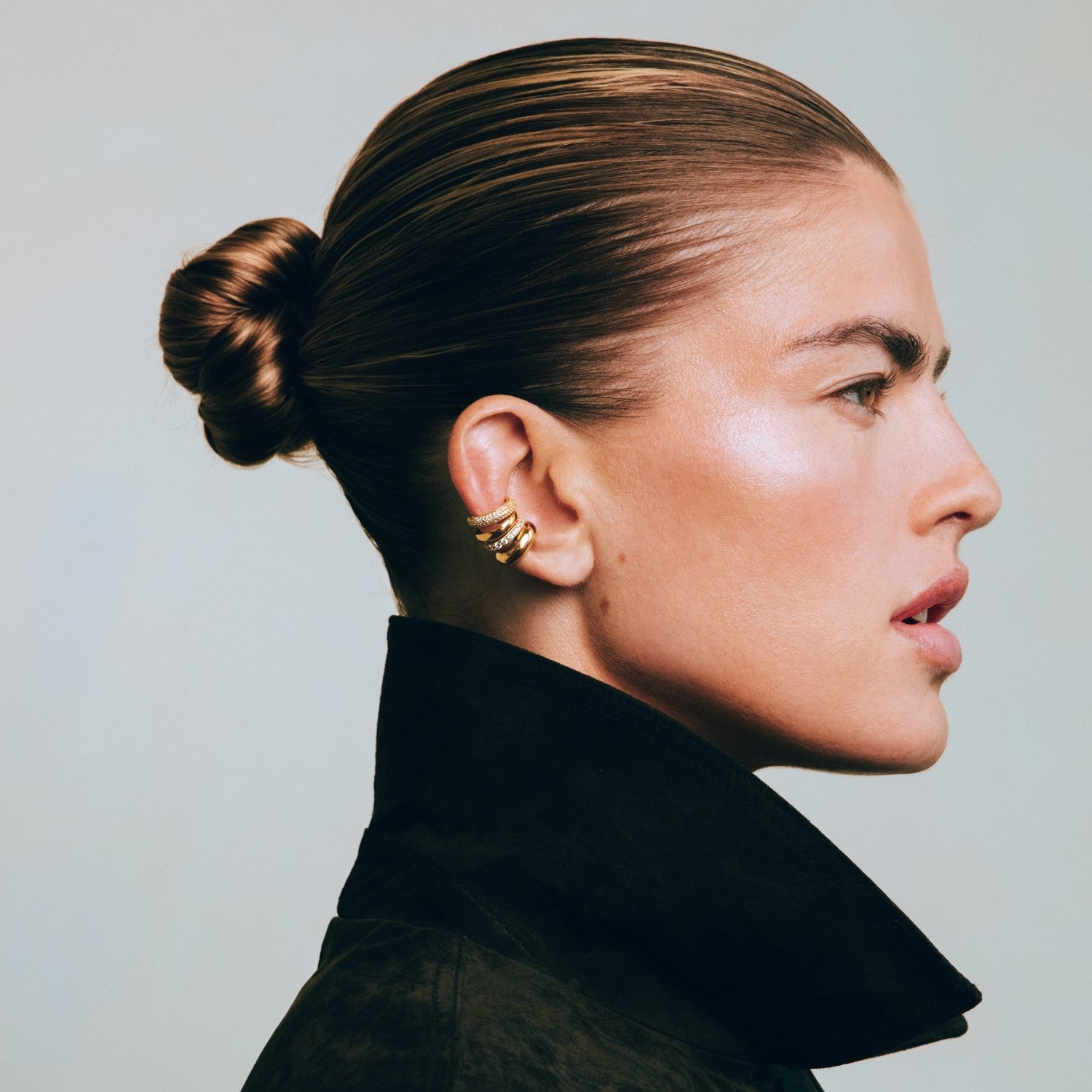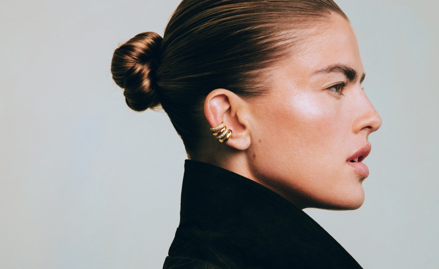 We offer a wide range of earrings in different styles. The Oval Hoops are a great starting point for a classy ear stack, while the Trio Spark Studs are perfect for your second or third piercing. Want to add an edgy touch to your look? Go for the Ribbed Ear Cuff, you do not need a piercing to wear it.